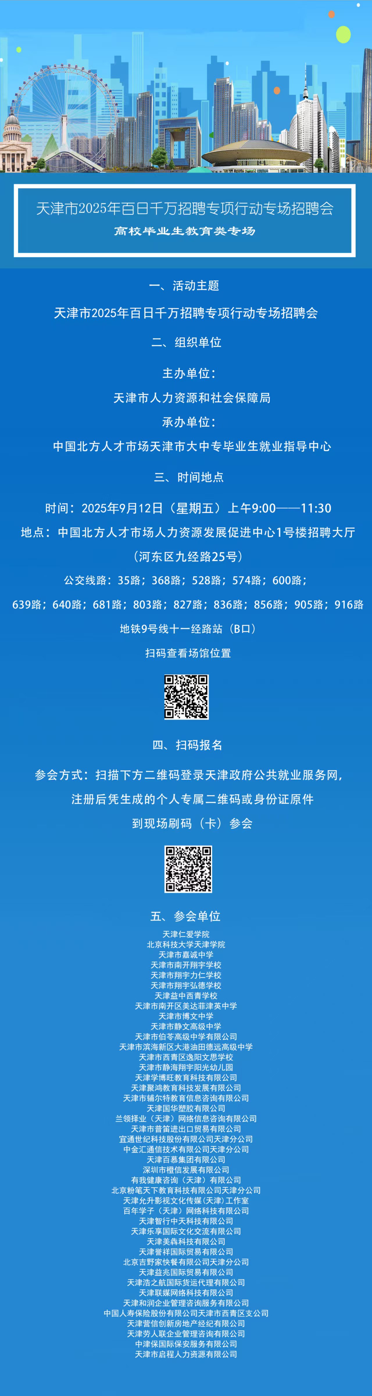 天津市2025年百日千万招聘专项行动专场招聘会-高校毕业生教育类专场